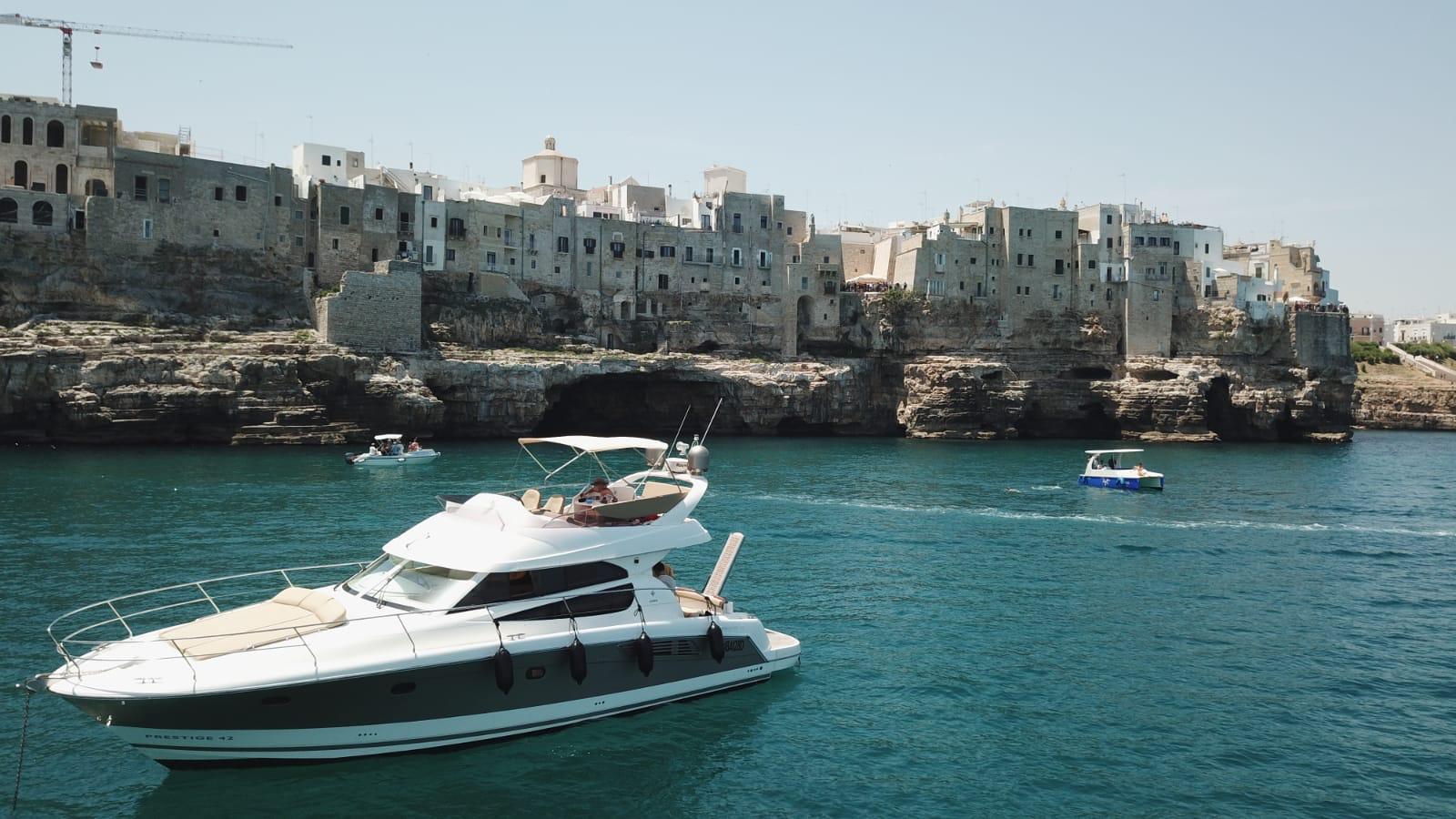 Elegante e versatile in 42 piedi, yacht con fly perfetto tra Monopoli e Polignano a Mare.